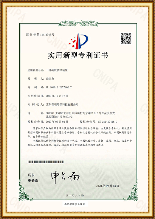 實用新型專利證書(一種凝膠噴涂裝置)