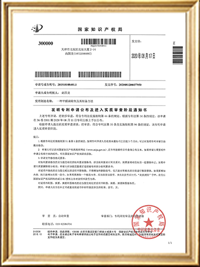 實用新型專利證書(一種甲醛清除劑的原料存儲