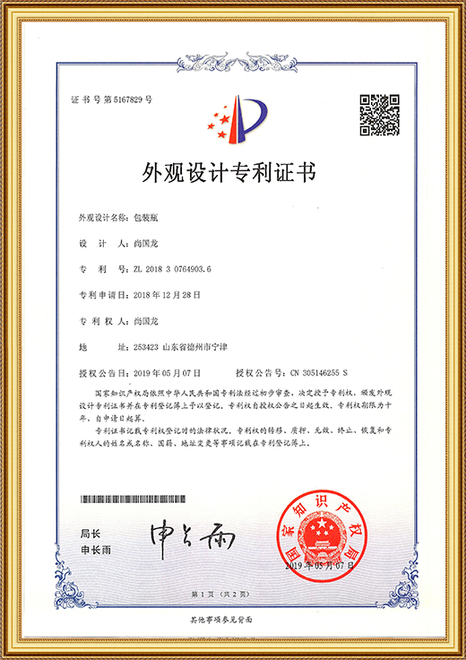 外觀設計專利證書
